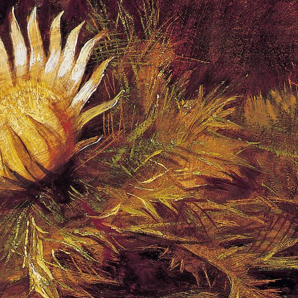 flüssig oder gar nicht bemalten Stellen zwischen den Zacken des Krauts.