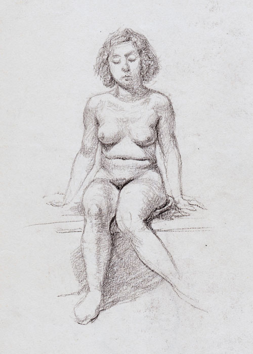 "Sehr förderlich war meiner Zeichenkunst (...), dass ich viele Jahre fast täglich Akte zeichnend in den Pariser Akademien verbrachte, ohne mir durch wohlgemeinte Belehrungen dreinreden zu lassen. Die in kurzen Abständen wechselnden Stellungen zwangen mich, Formen und Grössenverhältnisse mit einem Blick zu erfassen – eine Übung, die mir später sehr zustatten kam, um das Wesentliche einer Bewegung augenblicklich festzuhalten und mit einigen Strichen wiederzugeben, statt das Papier durch wiederholte Korrekturen zu verschmieren. Auch beim Porträtieren nahm ich mir vor, keinen Strich aufzusetzen, bevor ich nicht überzeugt war, es sei der richtige. Diese stetig erneuerte Kontrolle schloss unbestimmtes Herumprobieren aus und gewöhnte mich an eine disziplinierte Arbeitsweise, die ich auch bei der Farbgebung anwandte." (Egon von Vietinghoff) |