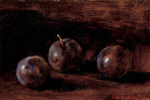 | Einfache Komposition, monumentale Einzelansicht. Eine etwas wehmütige Liebeserklärung an die Sinnlichkeit der Welt aus dem vorletzten Schaffensjahr. Sich in den Hintergrund auflösende Form, nachlassende Polarität, Vergehen im Urgrund. |