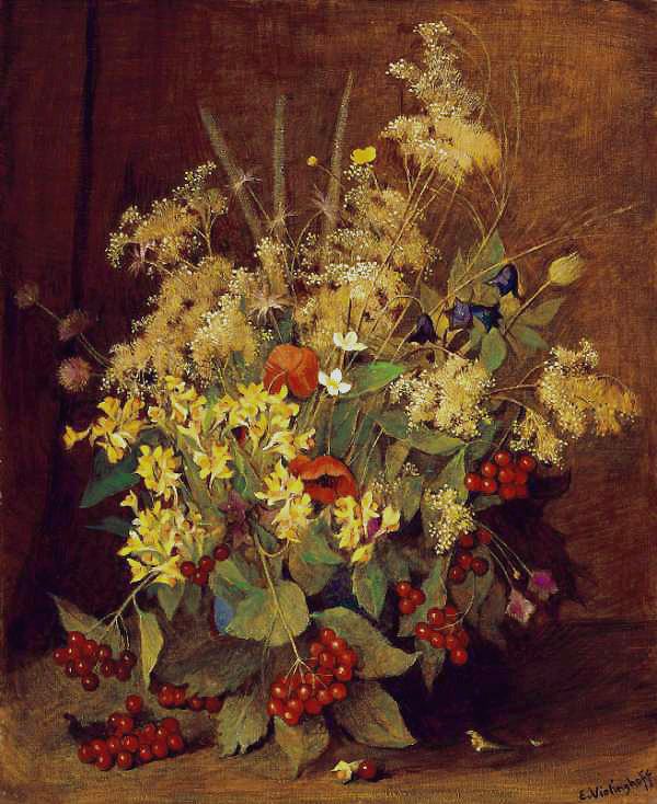Grosser Sommerstrauss mit roten Beeren [1974]